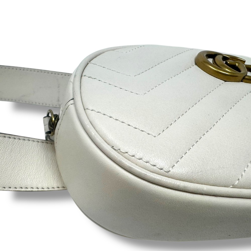 Il marsupio Gucci GG Marmont è un accessorio iconico che unisce eleganza contemporanea e praticità quotidiana. Realizzato in morbida pelle matelassé con motivo chevron, si distingue per il design compatto e sofisticato, arricchito dall’emblematico logo Doppia G in metallo color oro anticato, ispirato agli archivi storici della Maison.